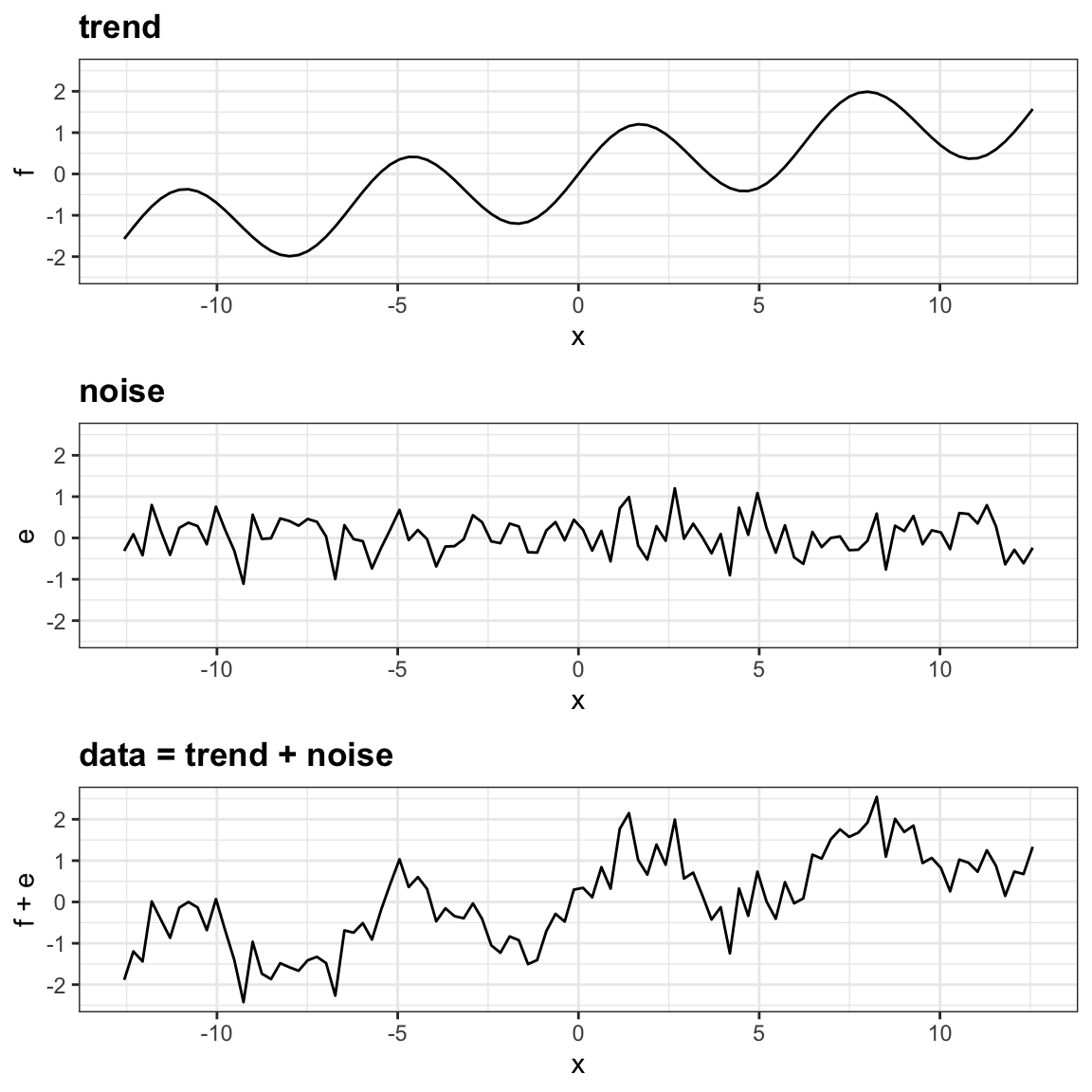 To motivate the idea, consider the plot below: the noise obscures the trend, but it does not destroy it, our task is to uncover the trend from the noisy data.