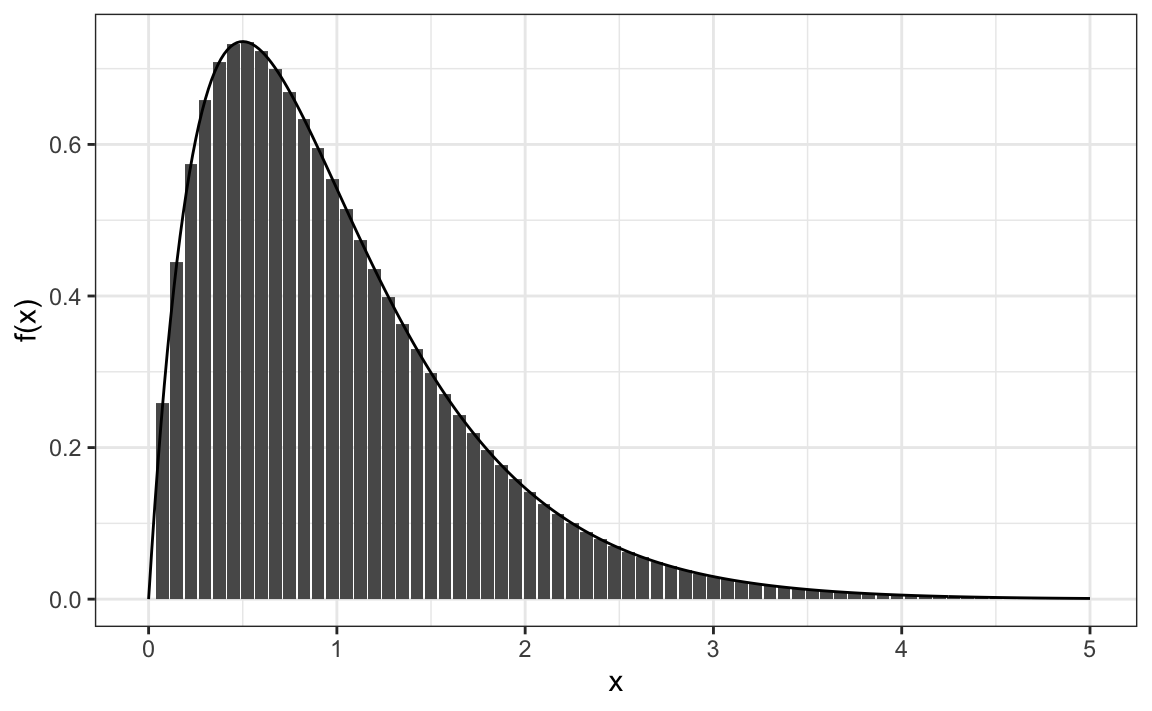 Note that although the derivation is not straightforward, the distribution of the maximum can be computed analytically. Once derived, it provides a much faster and more efficient way to evaluate probabilities than relying on simulation. However, in cases where the derivation is too complex or not possible, either due to the form of the distribution or the nature of the problem, Monte Carlo simulation offers a practical alternative. By repeatedly generating random samples, we can approximate the distribution of the maximum, or any other statistic, and obtain reliable estimates even in analytically intractable situations.