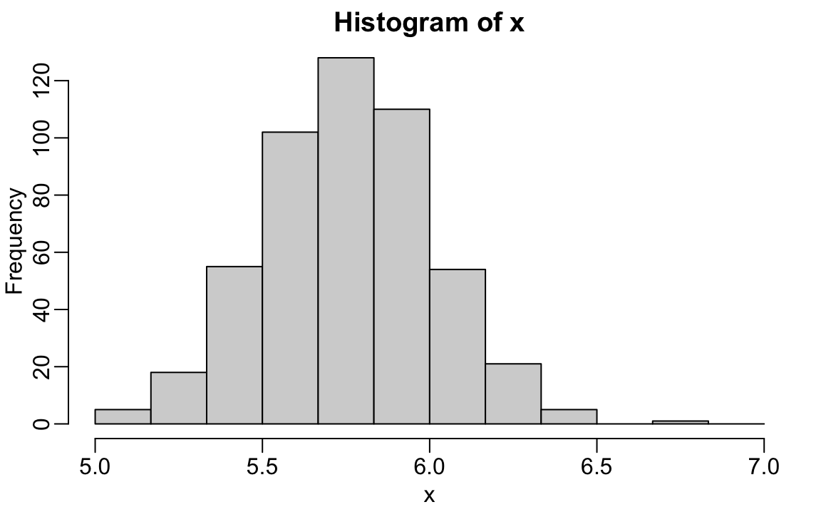 If the distribution of the values stored in x is well approximated by a normal distribution, it makes sense to use the normal distribution with mean m <- mean(x) and standard deviation s <- sd(x). This means that the entire distribution of x can be summarized with just these two numbers!