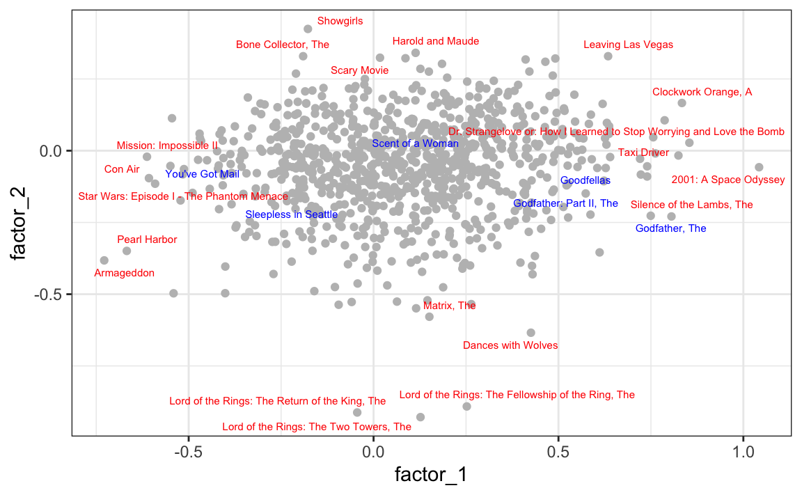 One approach is to use our knowledge of movies genres to define a factor that distinguishes between mob and romance movies: